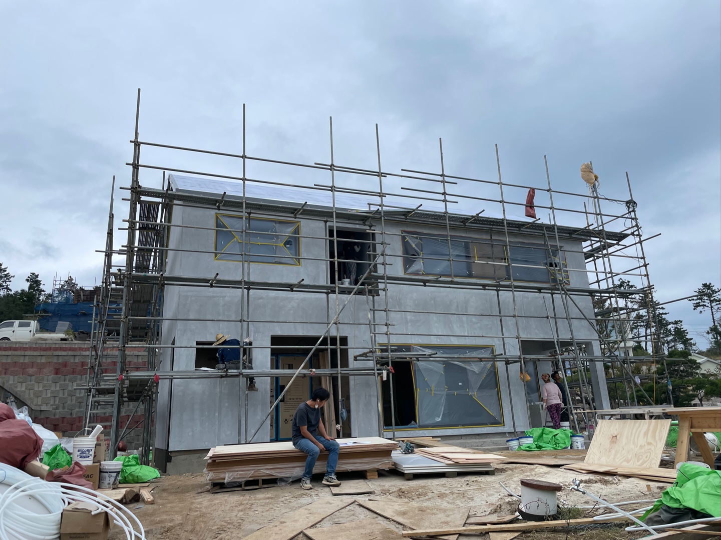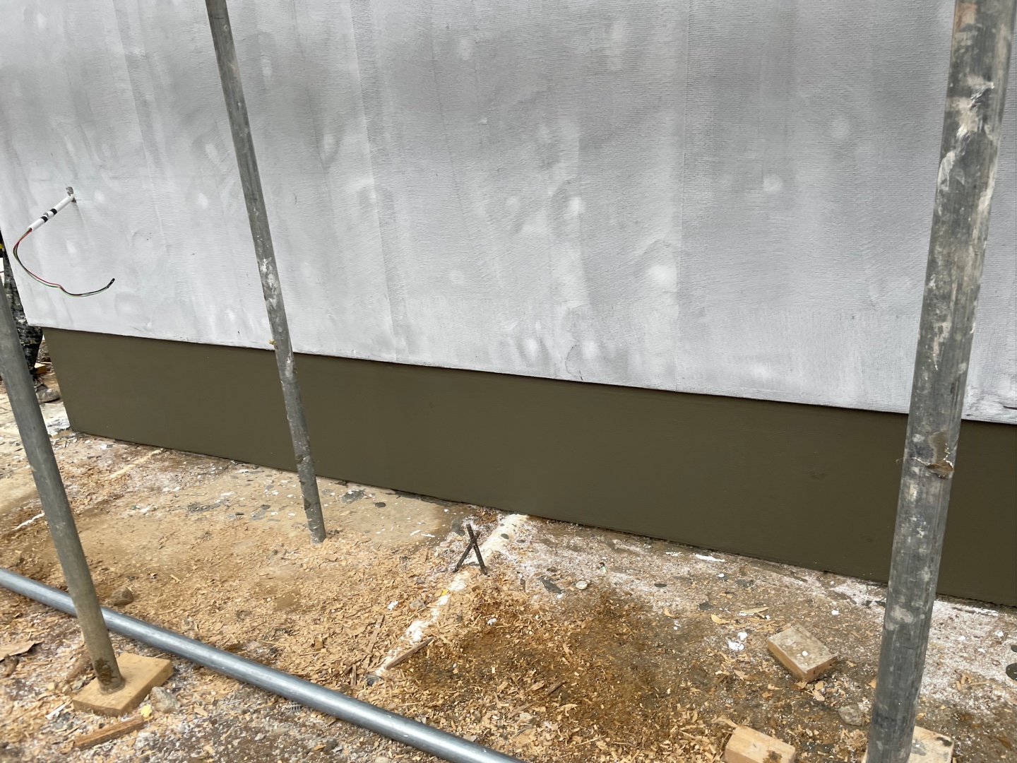 건물 앞면은 샷시때문에 잘라서 부착했는데 창호가 없는 옆,뒷면은 큰 판을 그냥 부착한것 같습니다