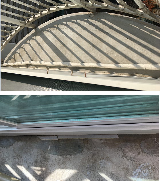 사진에 검게 보인 부분은 샤시 하단부 마감재가 약간 부족한 부분이라 내부 목재 때문에 검게 보였던 것으로 확인했습니다.