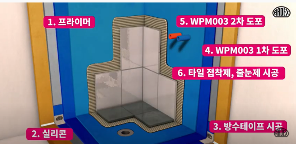 3. 사진상으로 방수 순서가 적합시 , 그전에 해야할 방수 작업은 뭔가요 ?