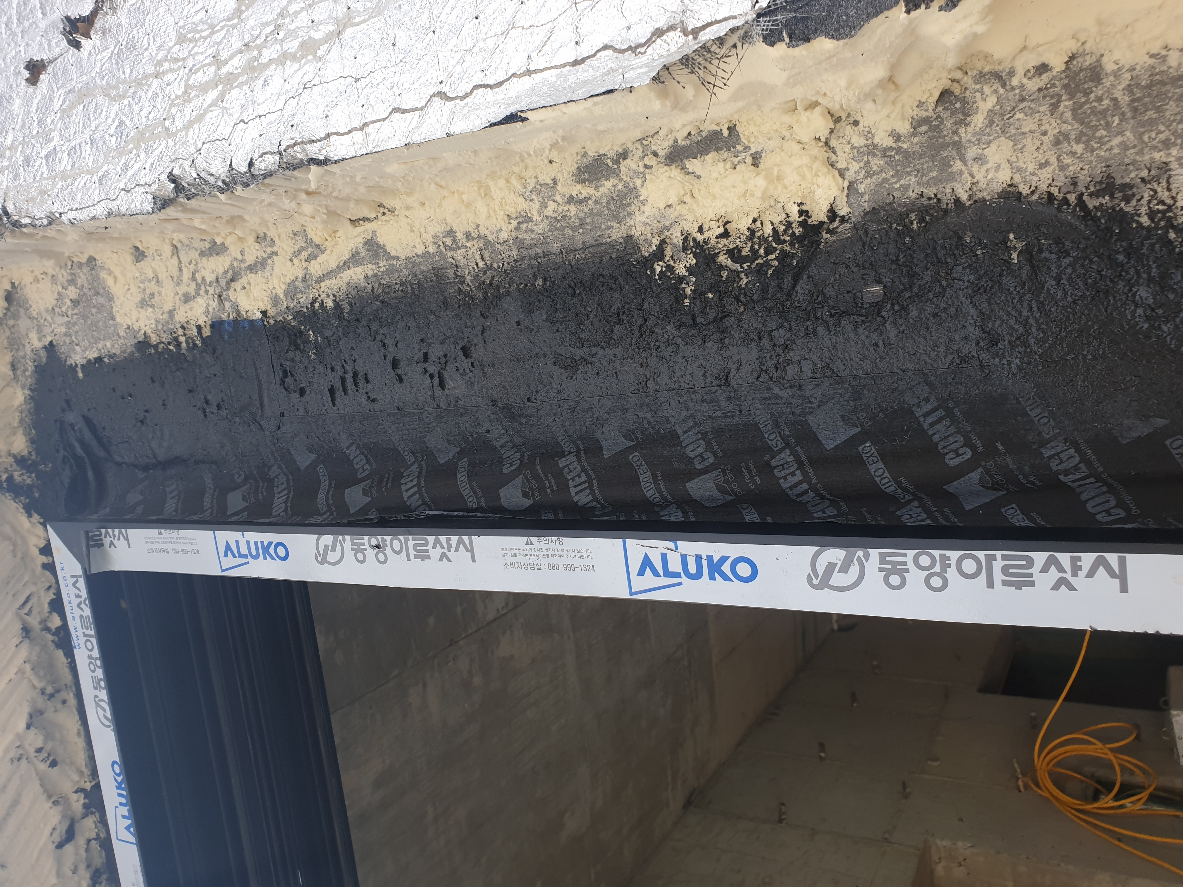 개구부 틈새가 넓으면 폭이 넓은 창호기밀테이프와 전용접착제를 사용하시면 되어요