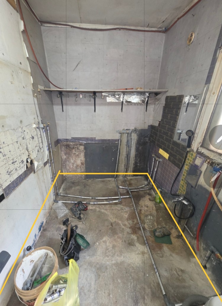 2. 그냥 수도관 부분만 몰탈 물 배합해서 덮어버리고 양생되면 분말째로 한번에 뿌려서 물뿌리고 수평잡기