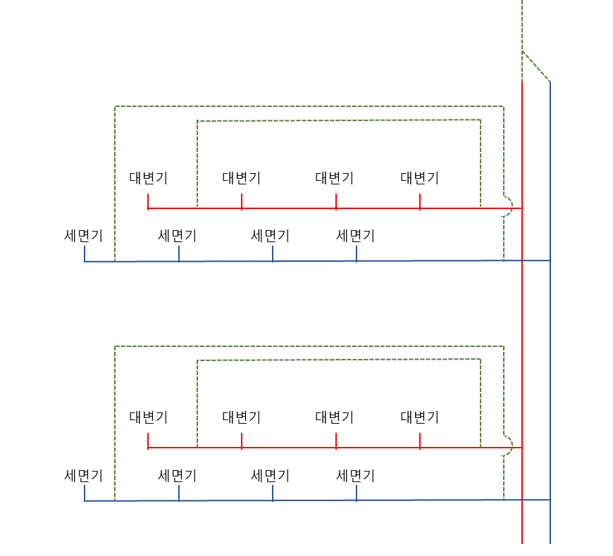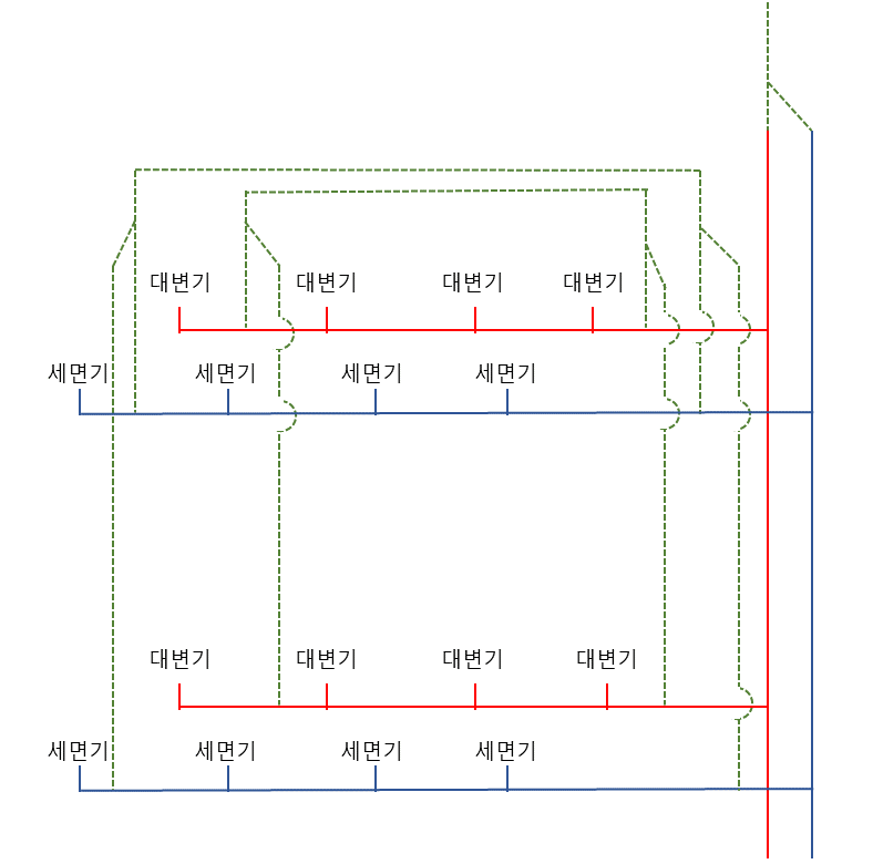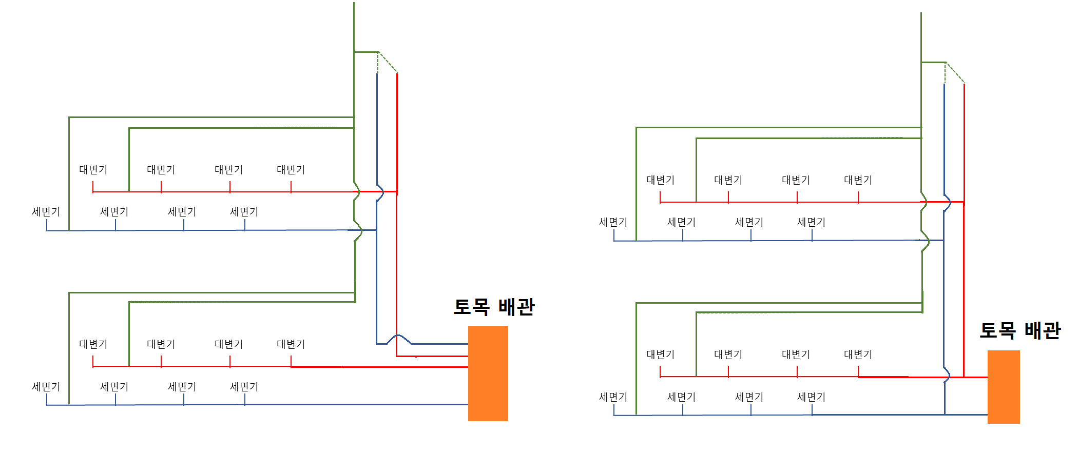 1. 제일 좌측 대변기와 세면기는 통기관 루프에서 벗어나있어도 괜찮나요?