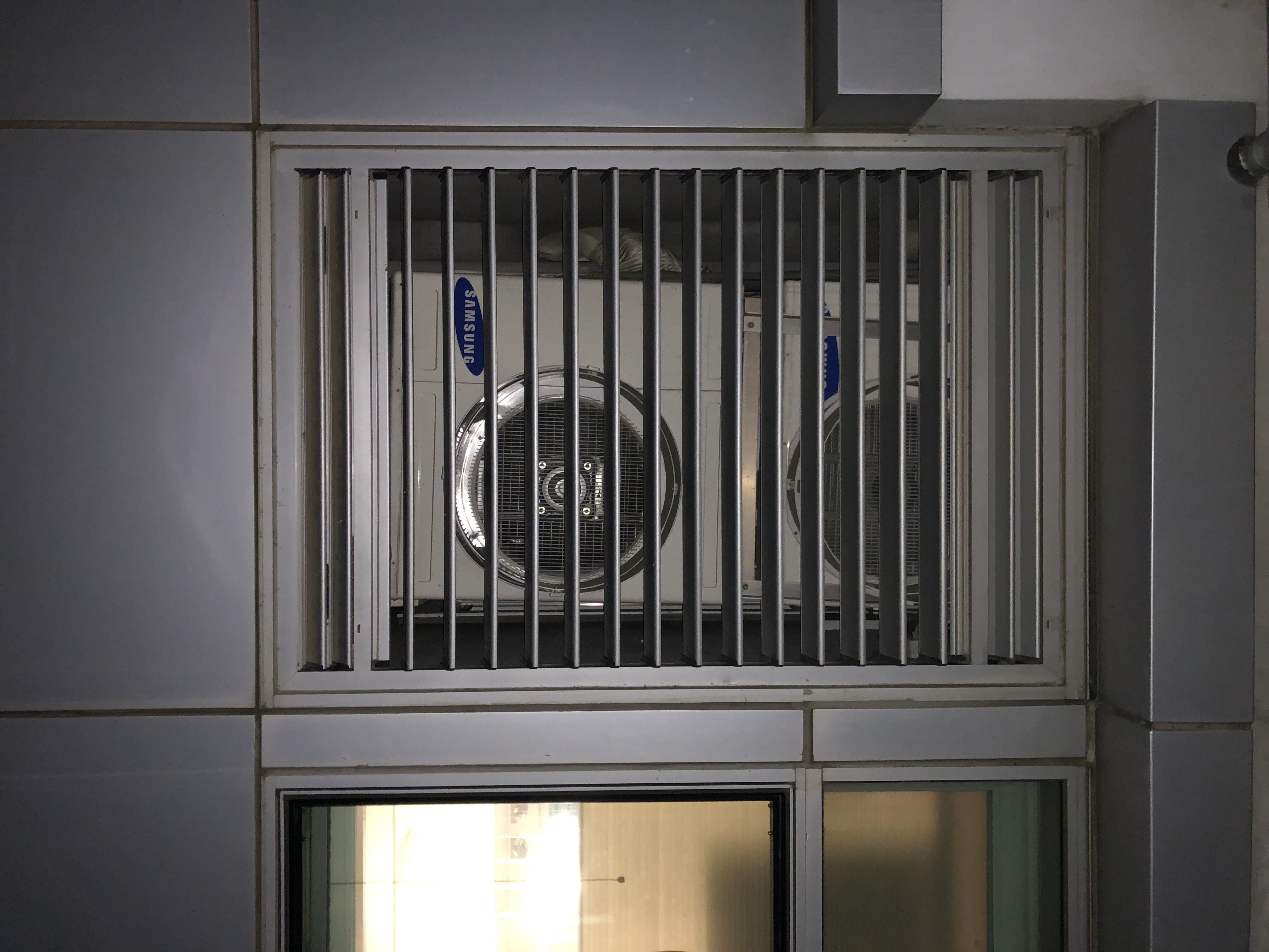 2. 첨부 사진으로 대체하고자 합니다. (1번에서 말씀드린 공간입니다.) 밤에 촬영해서 잘 안보이실 수 있지만, 에어컨 실외기 위쪽으로 흡기관이 설치되어 있습니다. 실외기를 바라보는 기준으로 왼쪽에 흡기만 설치되어 있으므로, 배기를 오른쪽에 두는 것에는 공간이 충분할 것 같습니다. 물론 배기와 흡기가 멀리 떨어질수록 좋겠지만, 공동주택의 특성 상 일단은 제가 말씀드린 수준이 최선이 아닐까 싶습니다.