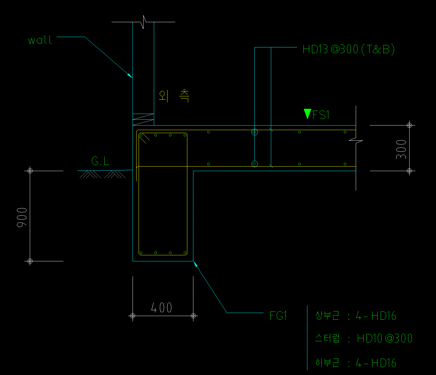 이것을 건축사가 건축허가시 아래 그림과 같이 변경하였습니다. 기초 양쪽 길이가 땅속으로 더 깊이 내려갔습니다.