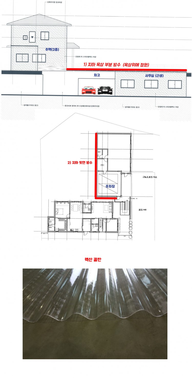 문제는 지하동(주차장 + 사무실)의 방수 부분입니다.