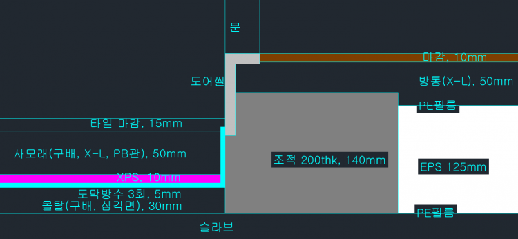 실내의 엑스엘배관이 화장실로 오는데, 도막방수 층을 통과하게 됩니다. 여기에서 장기적인 누수가 되는 경우가 많아서요.