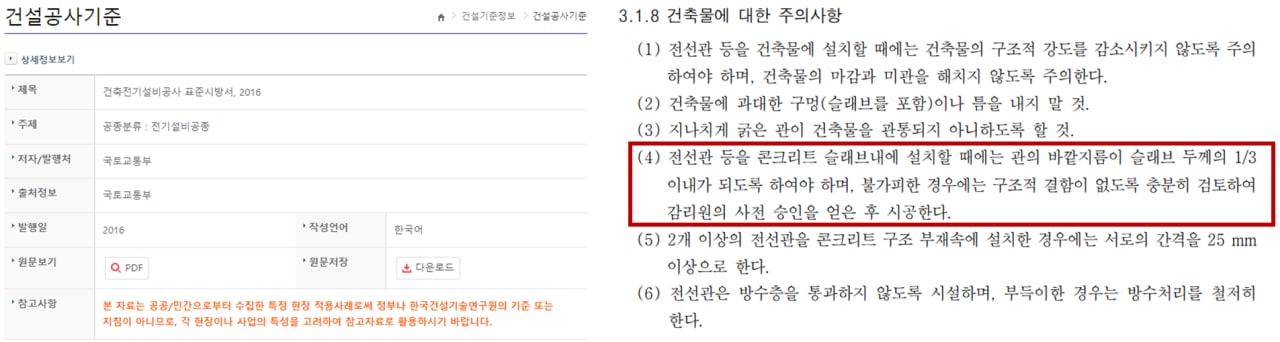 그 건축사 분께.. 여기의 글을 인용하지 마시고.. 같이 일하는 구조기술사에게 100A 배관의 벽 매립이 가능한지를 물어보라고 해주세요.. 그게 가장 나은 방법입니다.