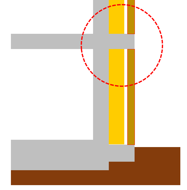 만약 돌출되지 않고, 1층의 벽돌이 그대로 2층까지 이어진다면.. 이어치기한 부분에 별 다른 조치를 하지 않아도 괜찮습니다.