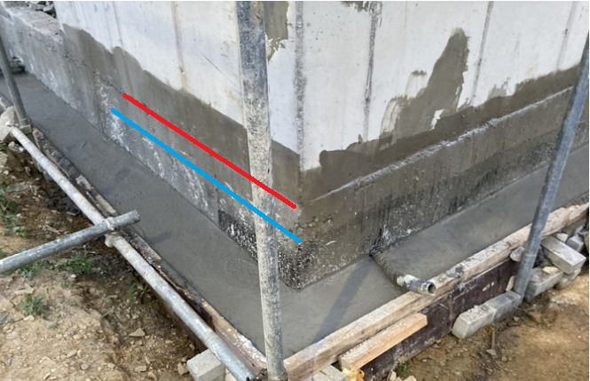 1층 기초할때 방수턱을 주지않고 시공했어요.