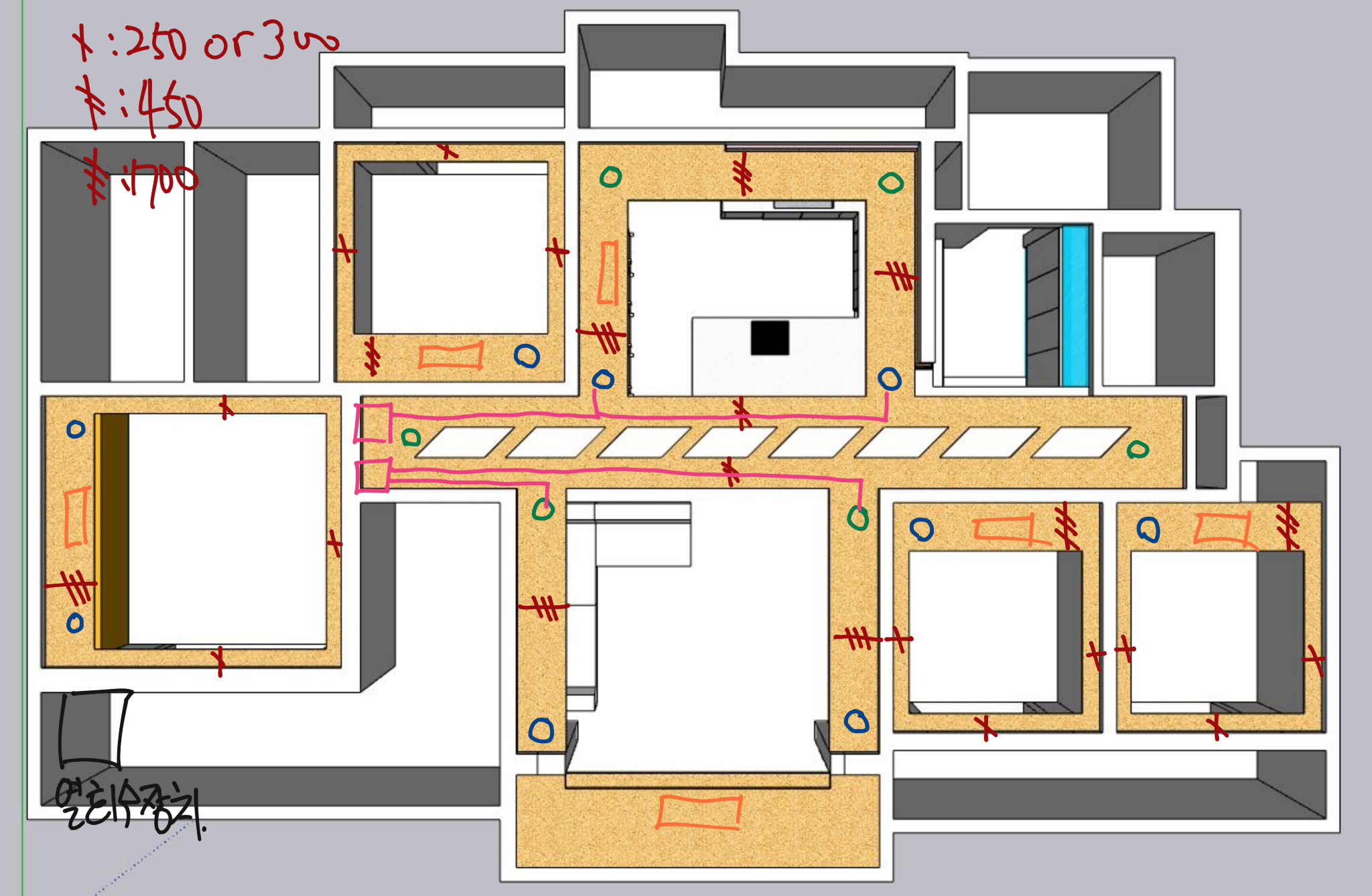 간접등으로 조도를 잡으려고 하다보니... 부딪히는 부분이 참 많네요...