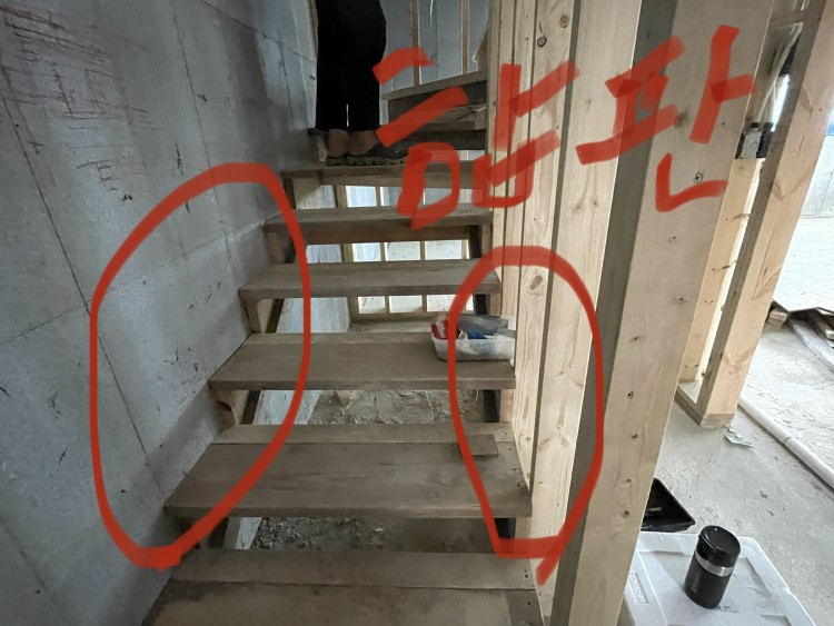 계단도 저희가 이상하다고 요구하면 그 때 임기응변으로 하는 것 같은 느낌인데 제가 잘못 생각하는 것인가요? 계단 전체를 제대로 된 목수에게 다시 해달라고 요구해도 될까요?