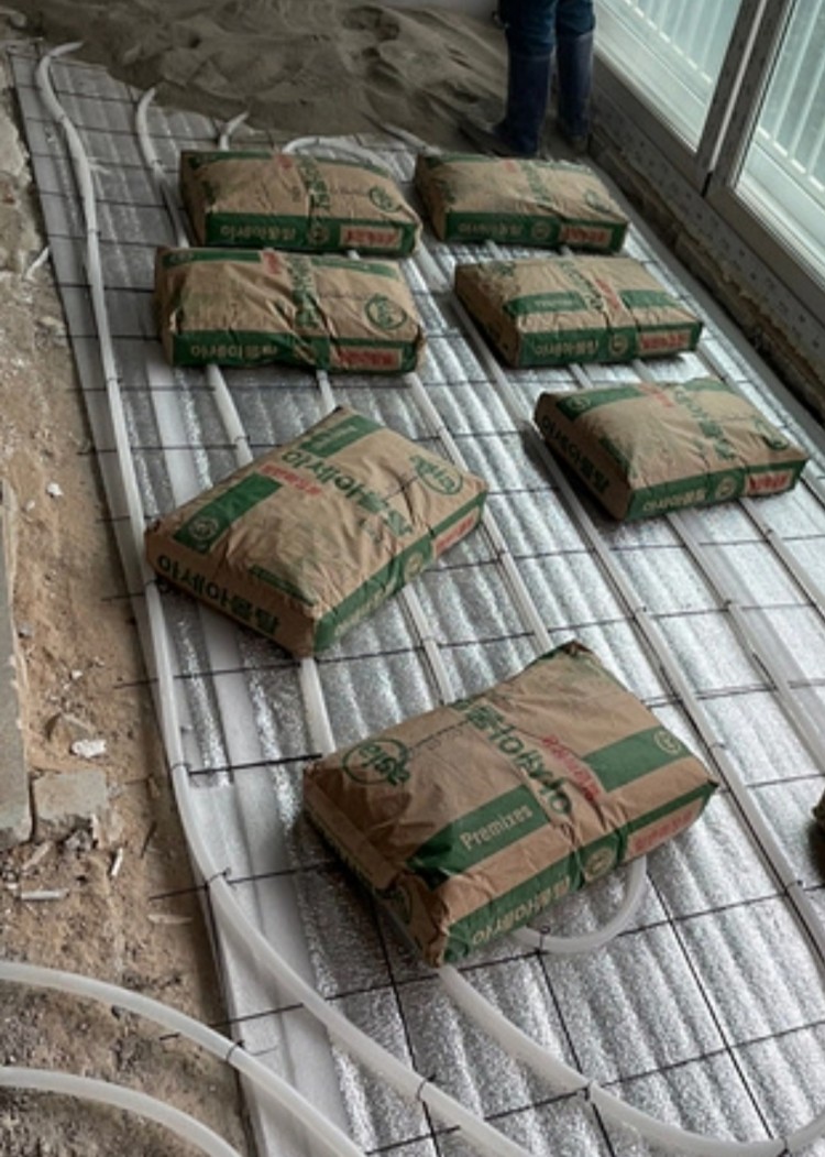 2. 바닥부분에는 스티로폼 없이 열반사 위에 배관을 넣고 미장을 합니다.