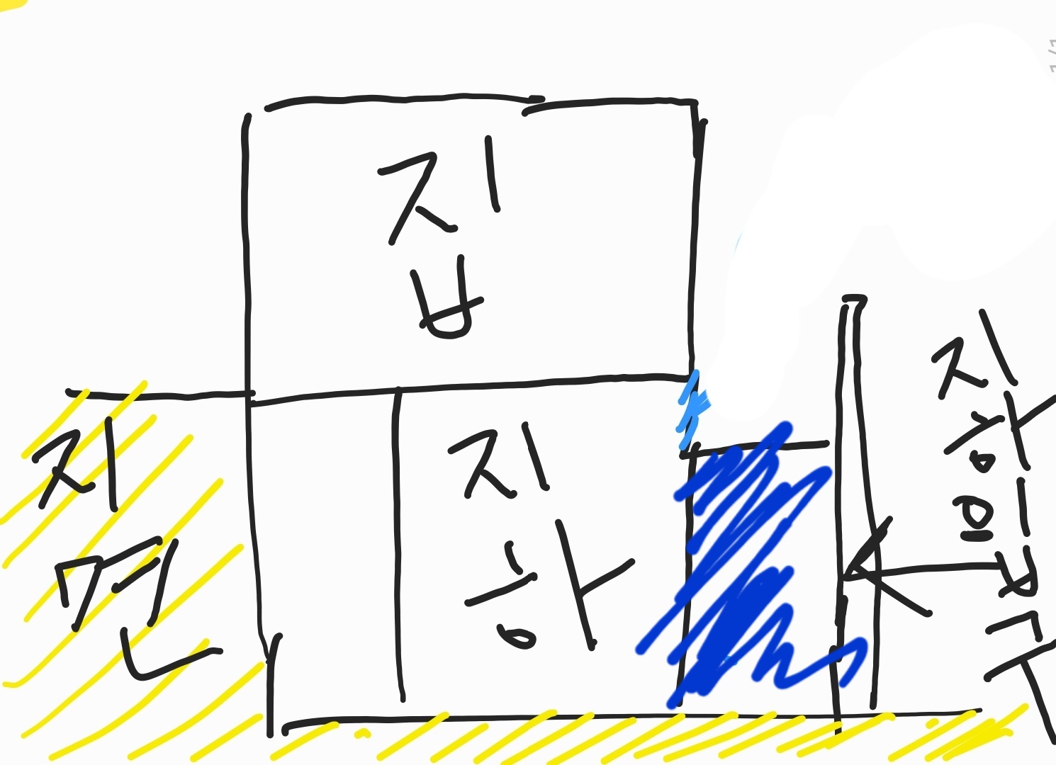 지하실 입구 기준 양 옆으로 또다른 집이 있습니다.