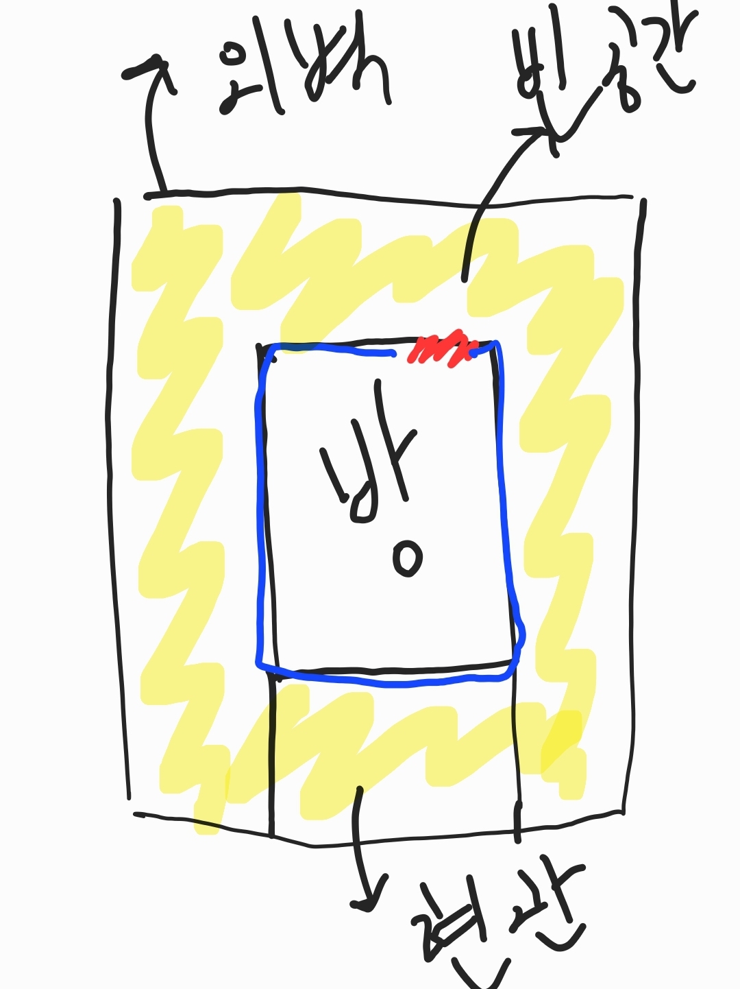 사진과 같이 외벽과 바로 연결된 방도 아니고 어떻게 보면 중간에 공기층으로 둘러쌓인 공간이 존재하는데 결로가 발생할 수 있나요?