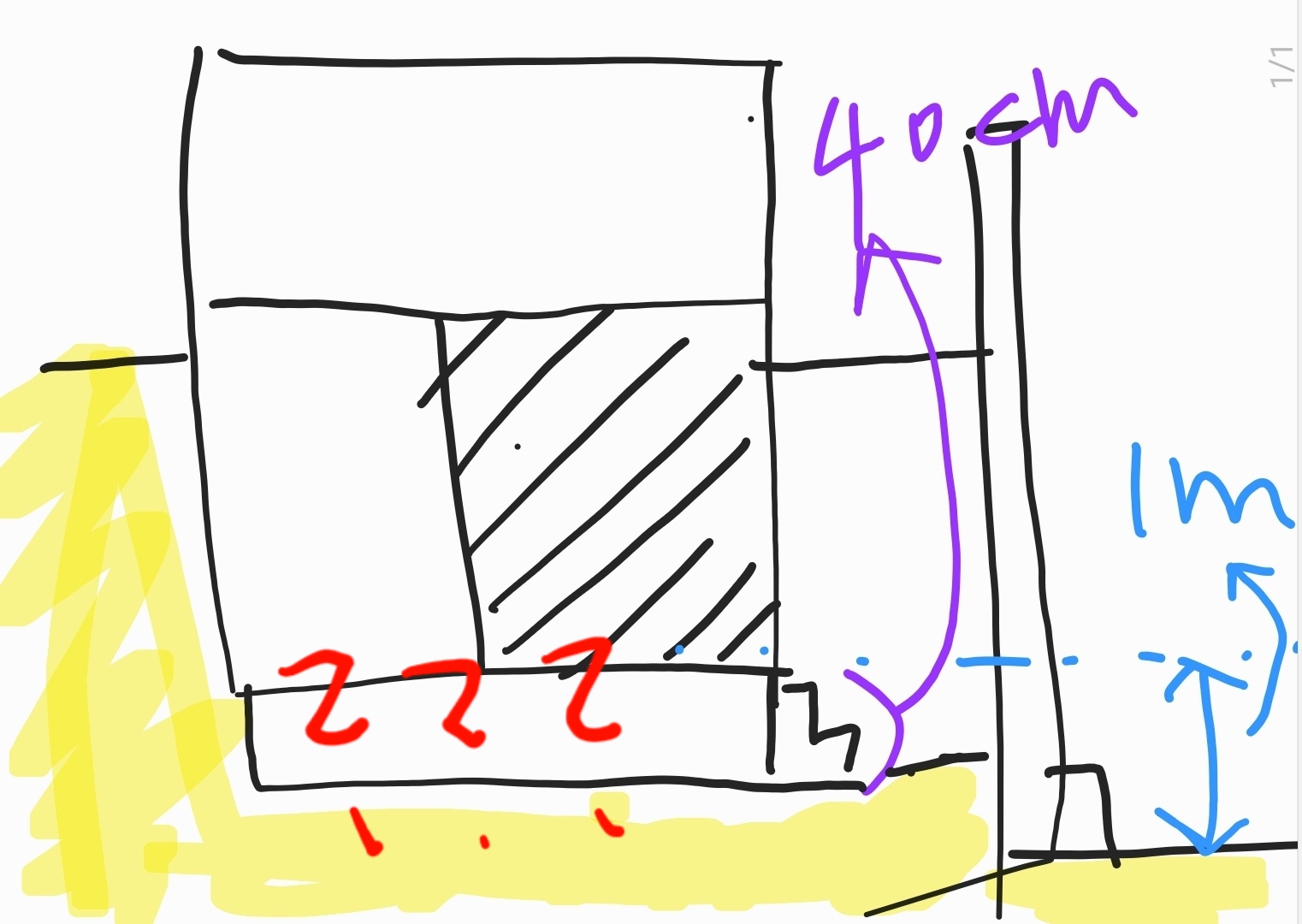 지금 생각해보니 실제로 약 40cm가 지면으로부터 떨어진 거리인거 같습니다...