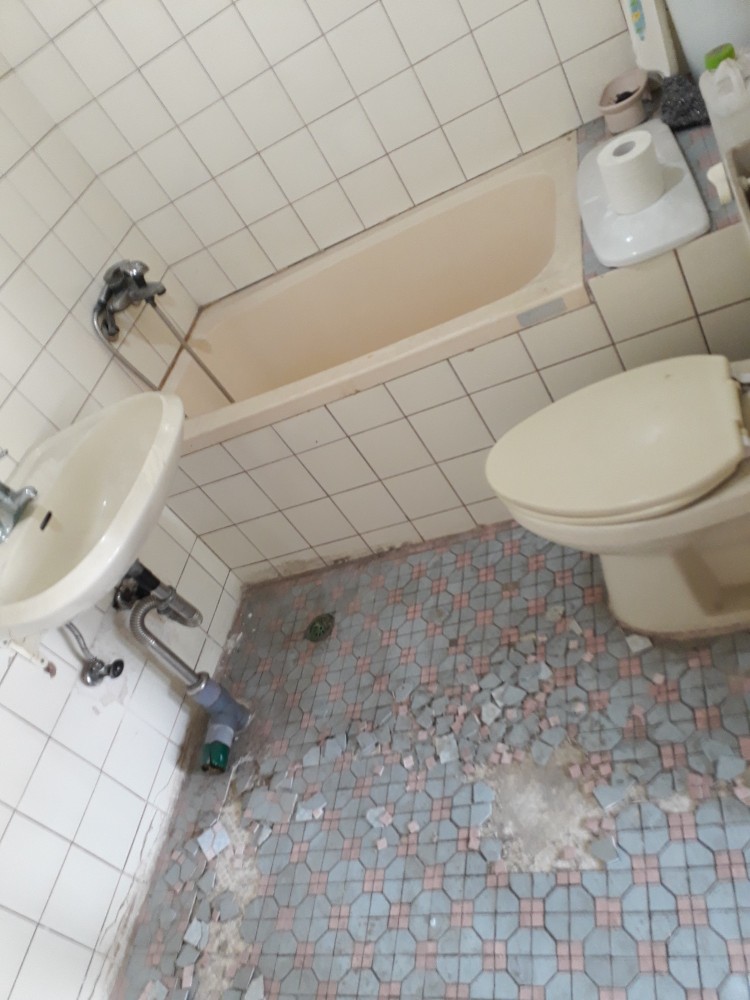 욕조를 철거하면, 바닥이 드러나니까요.. 다른 곳의 타일과 사모래층을 제거하면, 면이 맞게 될거여요.