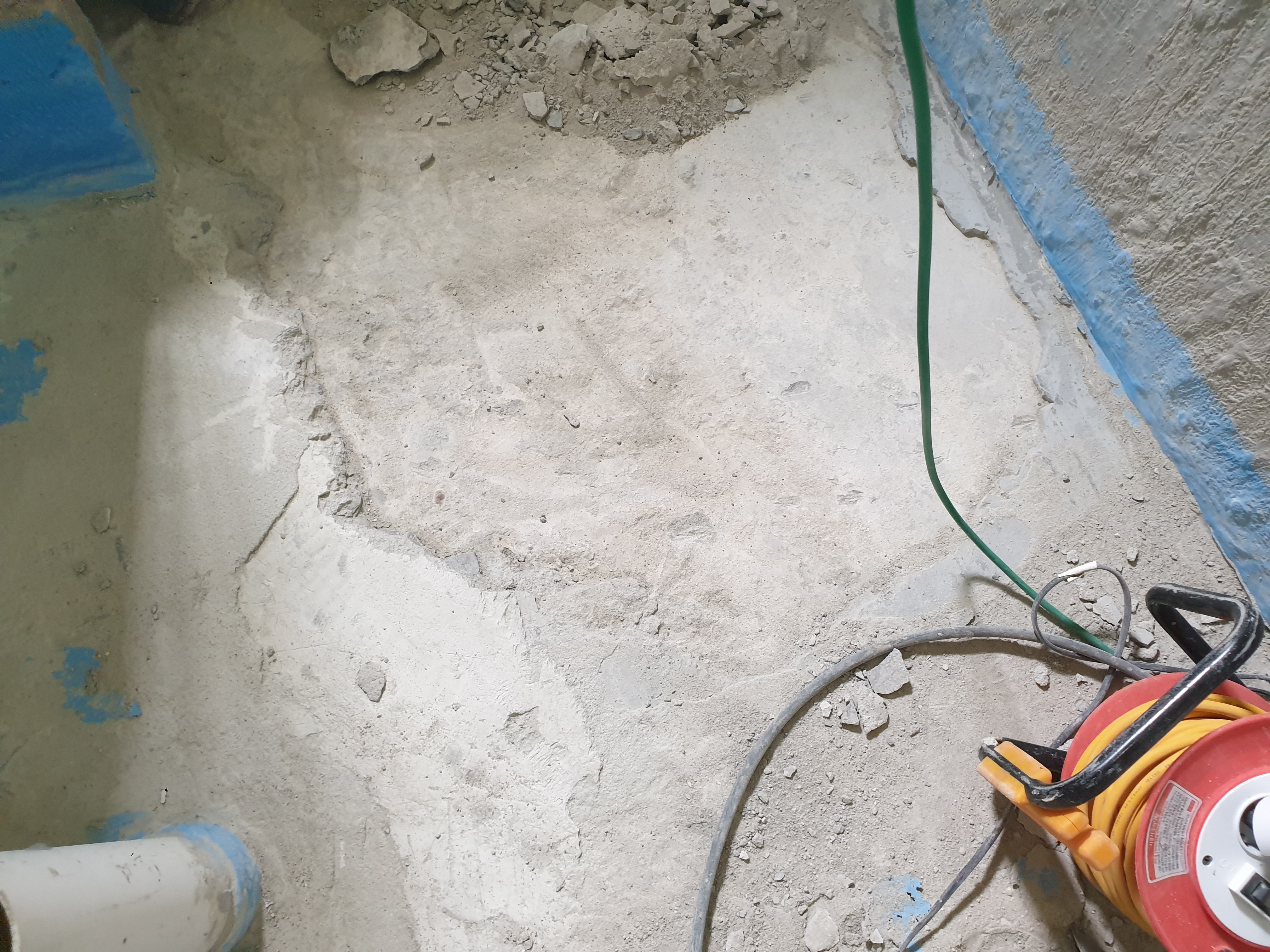 방수하시는 분이 배관 신설과 수도 이동 후 백시멘트로 까낸 공간을 채우고 액체방수 2회 하셨어요
