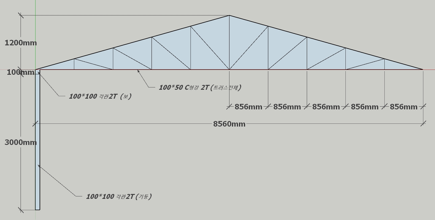 &.글자가 잘 안보이네요. 트러스 가로 8560 높이 1200 C형강 가로 750 세로 450 정도 입니다.