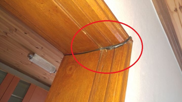 4. 단독 주택 가스 보일러 스위치 통과 시키는 배선인데 문 틈으로 가니까 선이 눌리네요