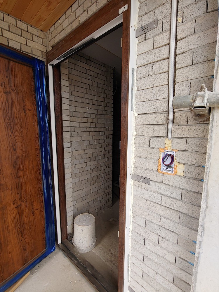 현관 포치 내 외부 공간 분리는 벽돌 조적으로 되어 있으며 건설사에서는 미장에 페인트 마감을 생각 하고 있습니다.