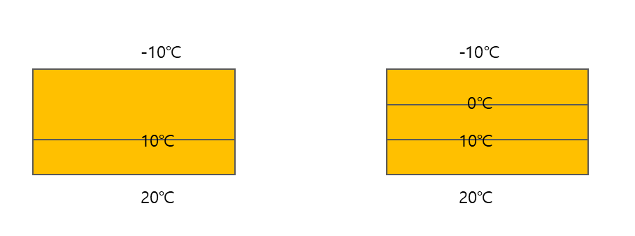 제가 두 겹을 권장 드린 것은... 위에 신범석님이 링크해 드린 글에도 나오긴 합니다만... 아래와 같이.. 단열재 끼리도 외단열이 되는 것이 좋기 때문입니다. 오른 쪽 같이 같은 두께 세 겹이면, 첫번째와 두번째 단열재 사이의 온도가 외기 온도와 가까와 지면서, 그 속의 물이 얼 수 있어서 그렇습니다.