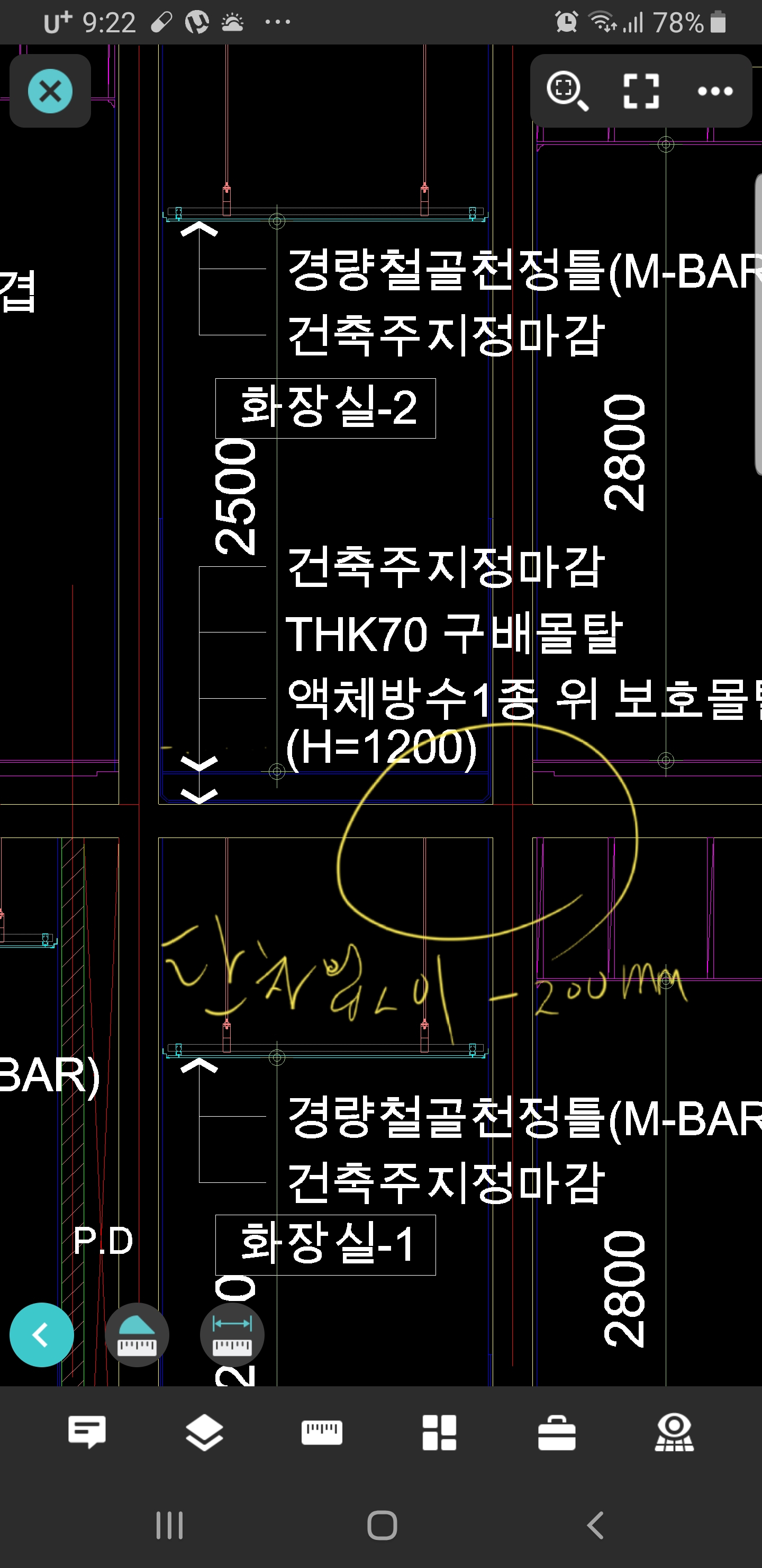 도면에 화장실 바닥 시공 관련 조언 부탁 드립니다
