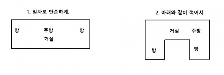 1번은 일자로 쭉....방 주방거설.방..으로 단순하게