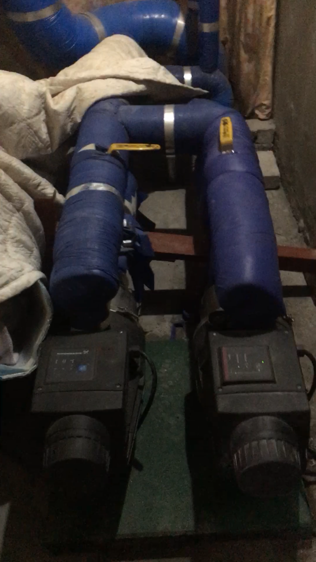 저렇게 바닥으로 연결되어 있는부분 제외하고는 바닥이나 벽에 닿아있는 배관은 없습니다ㅜ 제가 기계실 올라가서 영상등 촬영시에도 기계실안에서 쿠우우웅 하는 진동을 느낄 수 있었는데, 문제는 정확히 어디서 유발되는 진동인지를 모르겠더라구요