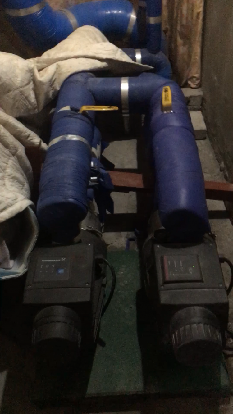배관과 벽 사이에 아주 약간의 완충 공간이 있었는데.. 펌프의 위치가 변하면서, 해당 완충공간이 없어진(벽에 거의 직접 닿는) 느낌입니다.