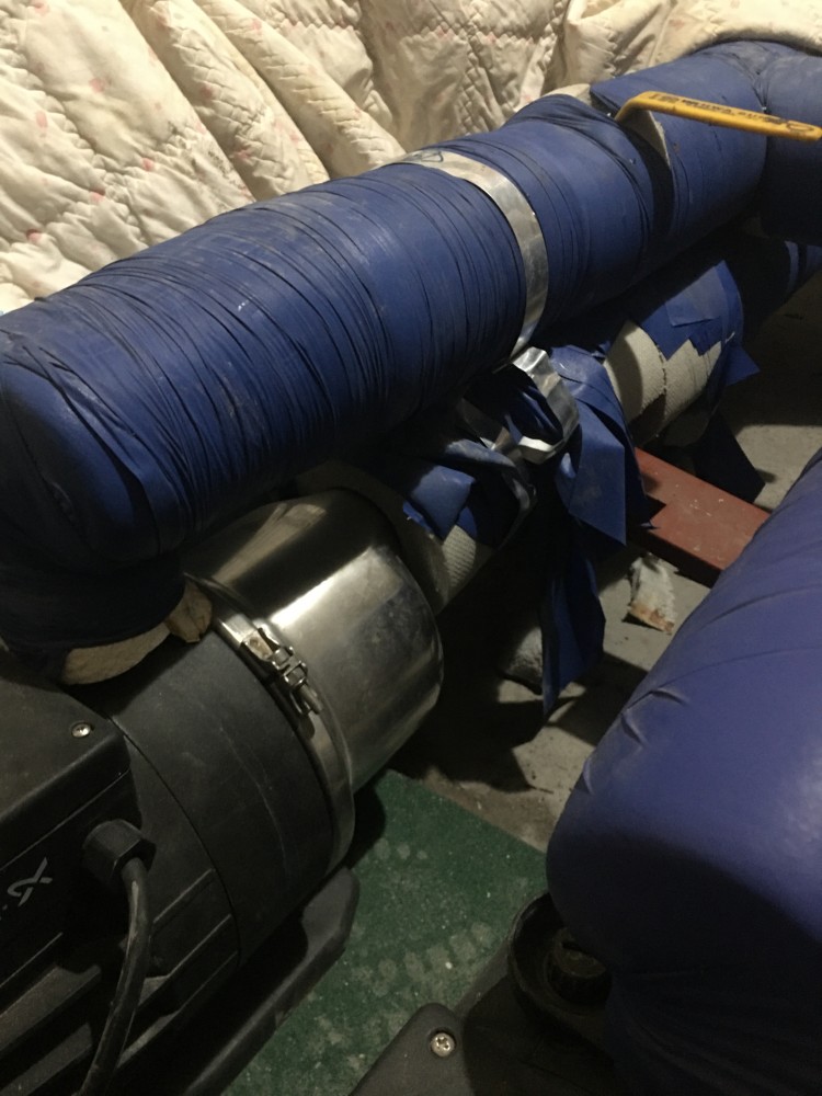 없는건 맞는데 (기존 배관 높이와 어느정도 맞춰야 하므로) 배관 연결부가 보온으로 감싸져있어서 세부적인 모양등을 볼 수 없어 최대한 가까이 찍어봤습니다.