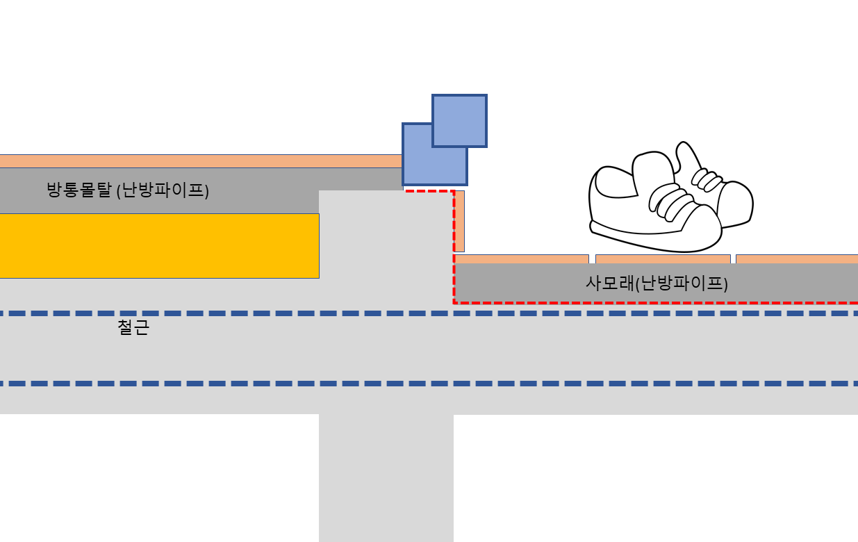 즉, 슬라브 다운없이.. 높이를 낮추어서 슬리퍼도 걸리지 않게 하기 위해... 철근의 피복두께를 없애 가면서 시공을 하고 있다는 의미였습니다.