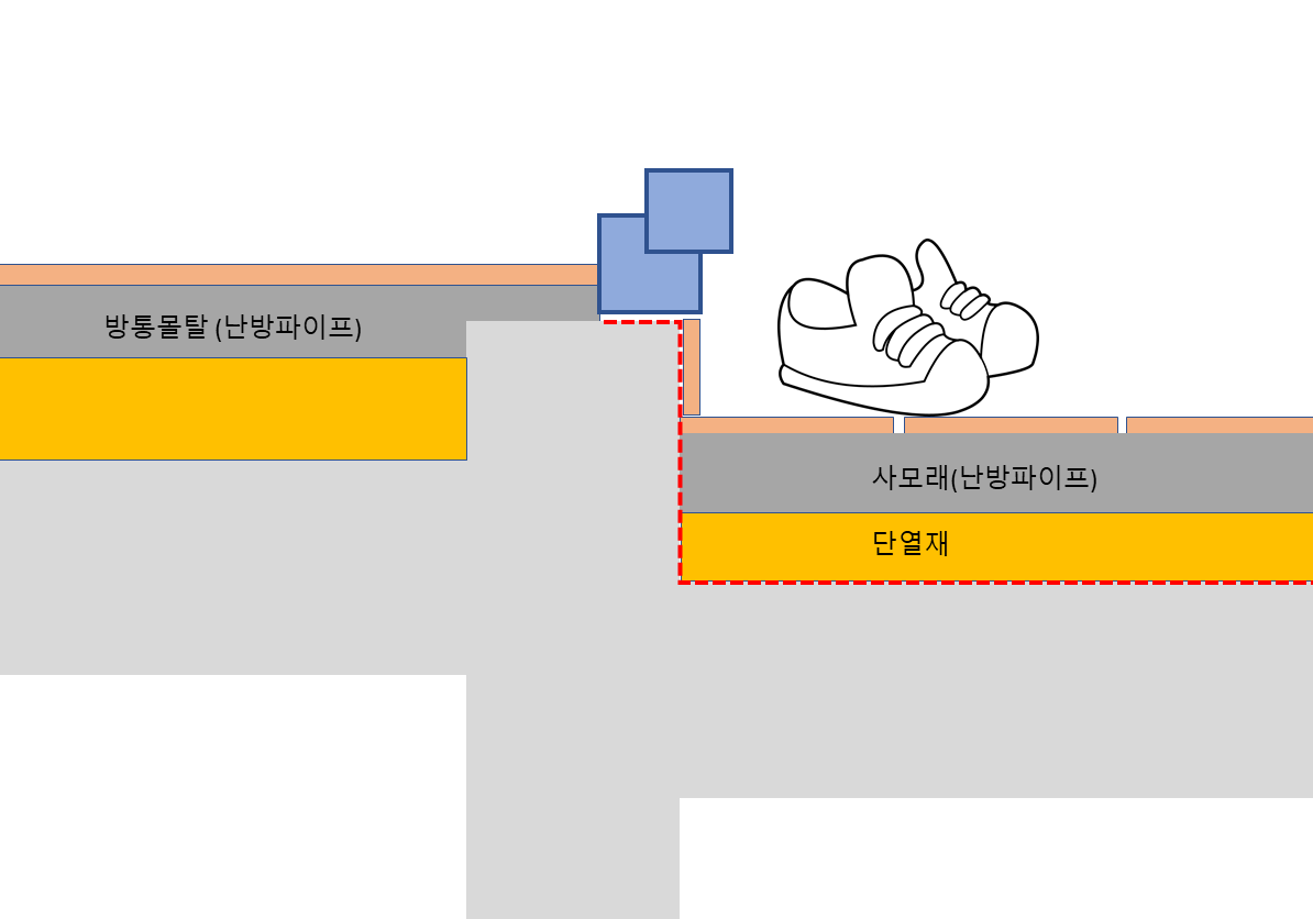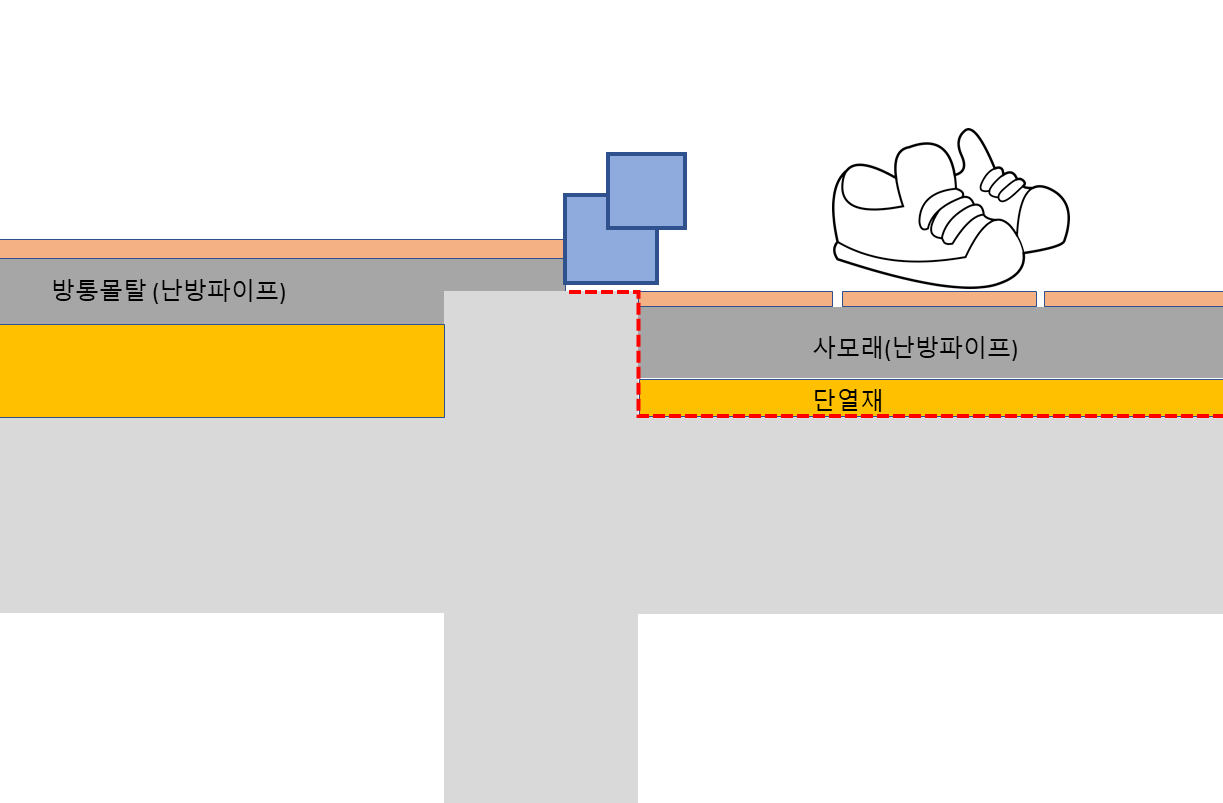 그러나, 만약 화장실이 슬리퍼 높이 만큼 다운되지 않아도 된다면 아래와 같습니다.