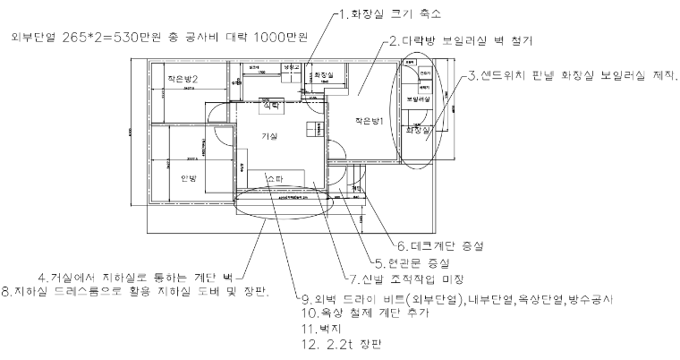 저희집 도면이고, 우측타원에 판넬로 화장실과 보일러를 만들꺼구요.