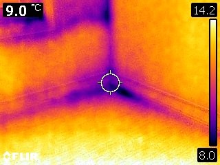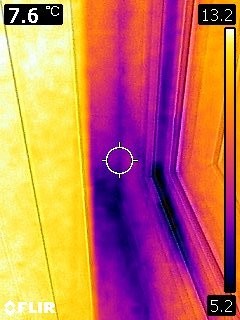 창호 틈에서도 냉기가 많이 올라오고 바닥 창호랑 단열재 만나는 틈에서도 냉기가 나옵니다. 벽 모서리는 말 할 거도 없고 바닥 모서리도 심하네요.