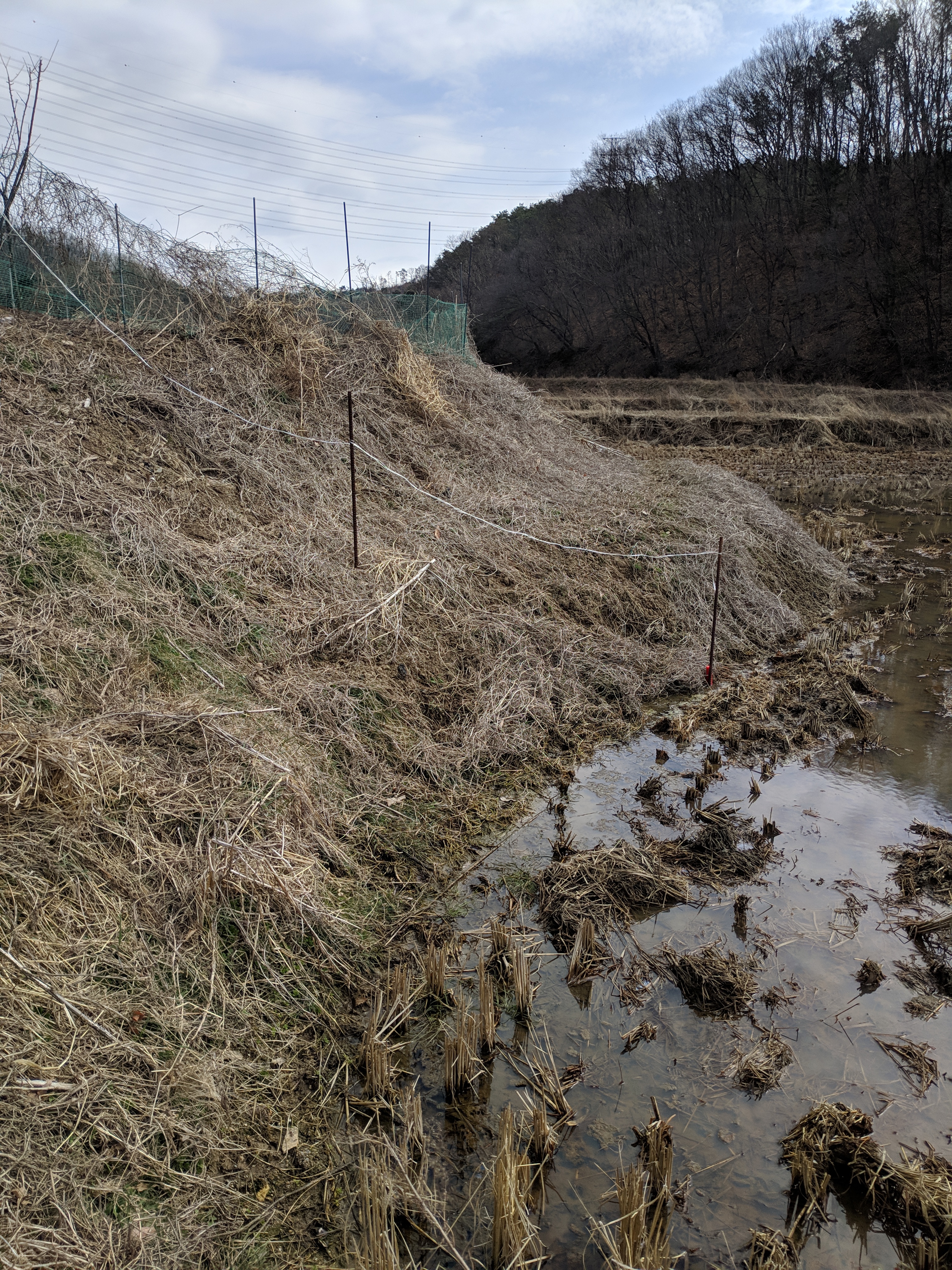 3. 최악의 경우 기초가 만들어지는 곳이 논이거나 논둑 이 될 확율이 높을듯 합니다. 아래 논에서 모내기 할때마다 조금씩 조금씩 확장 하는듯 했습니다.
