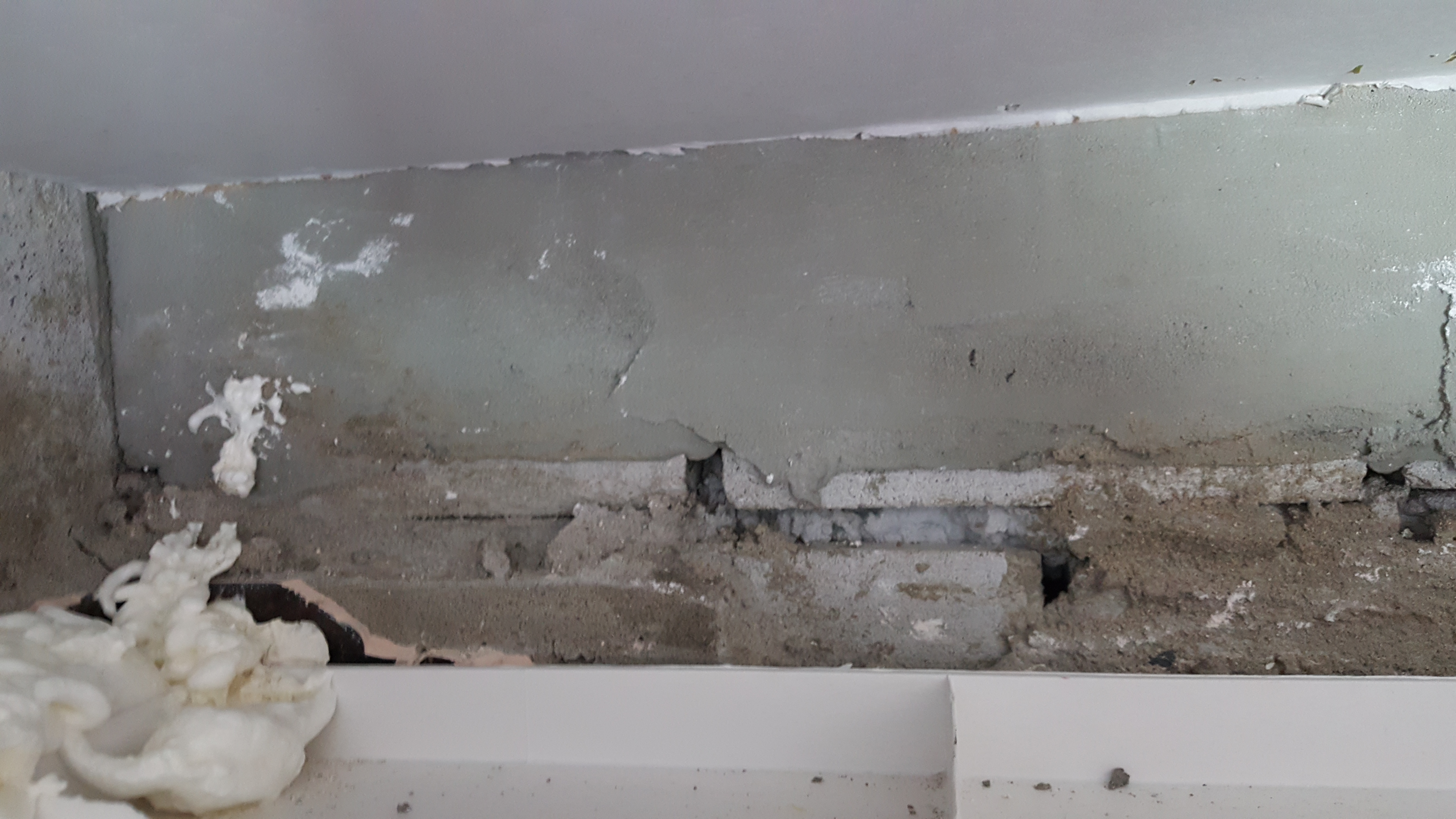 벽돌을 자르다 보면 중간중간 서 너곳 정도에 콘크리트벽과 벽돌벽을 서로 일체화 시키는 평철 앵커가 있을 것인데, 이는 손상되지 않도록 해야합니다. 만약 손상되었다면 그 부위를 조금 더 크게 파내고 다시 앵커를 해서 묻어야 할 것입니다.
