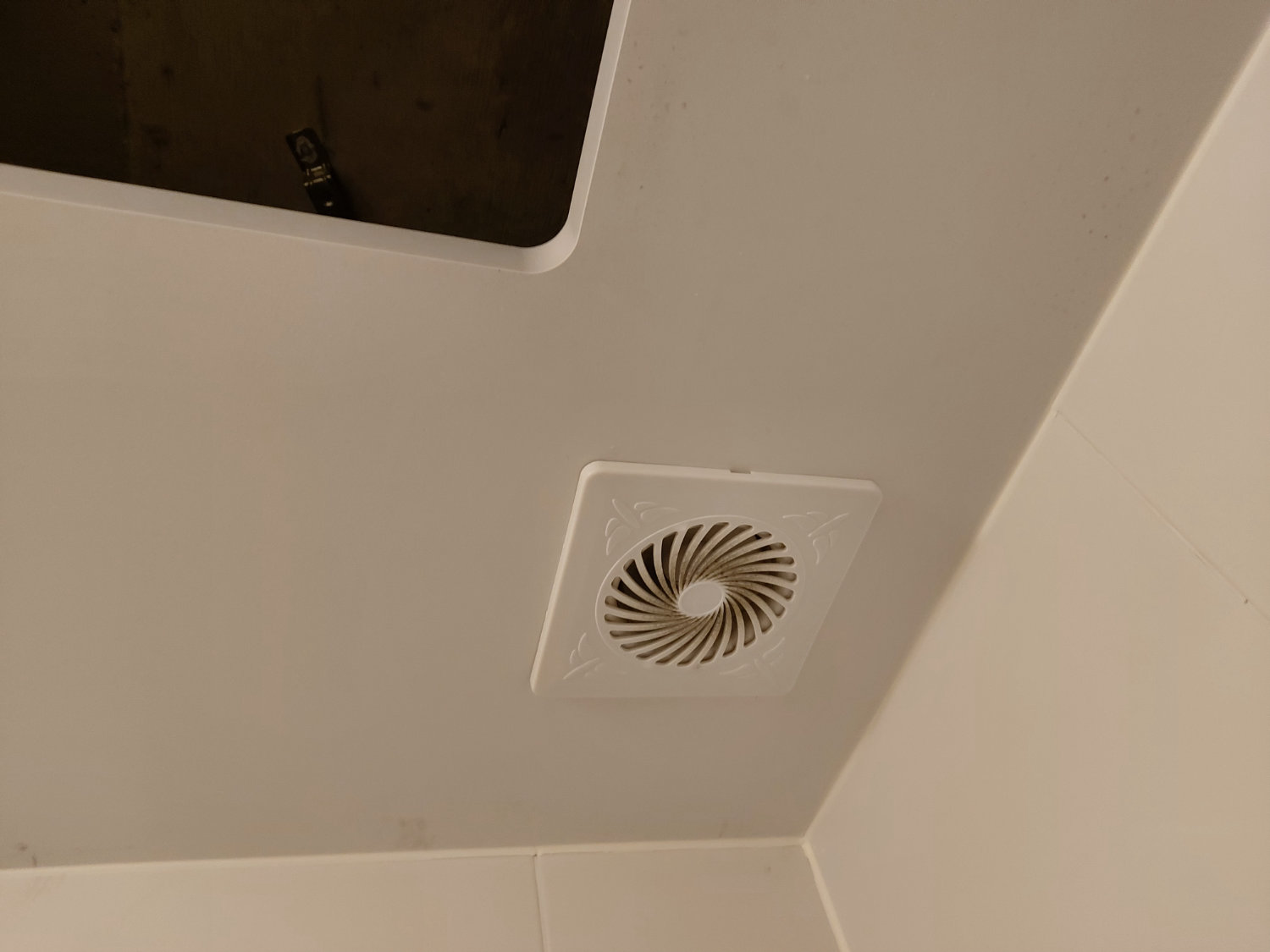 환풍기와 전등이 동시에 켜지게끔되어있고,천장안을 들여다보니 그냥 콘크리트로 되어있습니다....