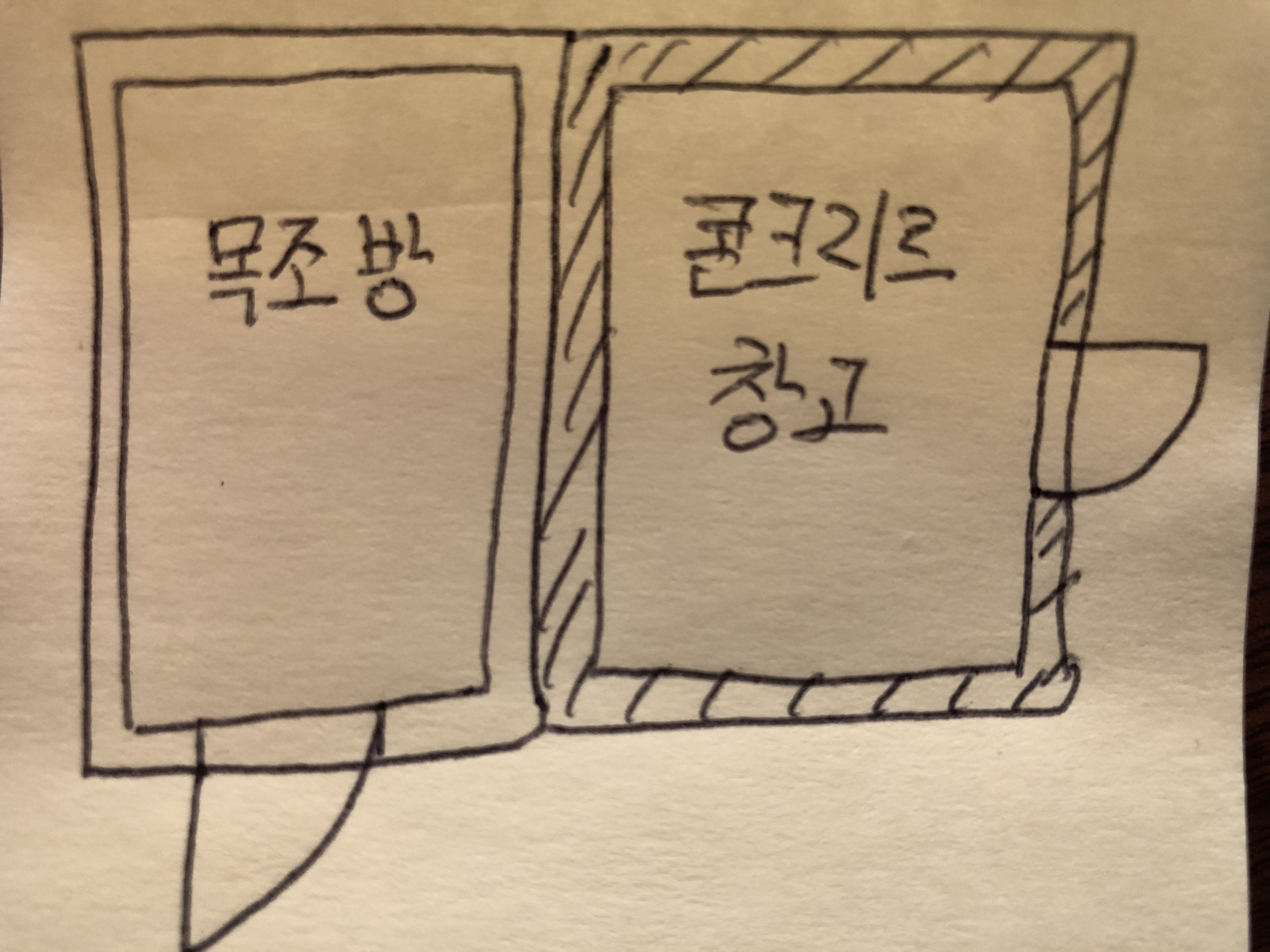 목구조와 콘크리트벽에가 맞닿는 면적은 가로 3000 x 세로 3000 정도 입니다.