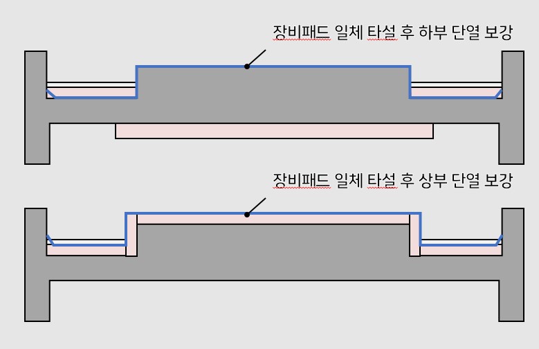 2. 이런 방식으로 보완될 수있는지, 장비패드는 일체 타설하는 경우가 있는지 없는지
