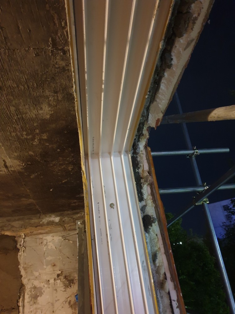 다만, 외벽의 외단열미장마감(드라이비트) 속의 메쉬가 새로한 면까지 감아서 돌아야 하는데요.
