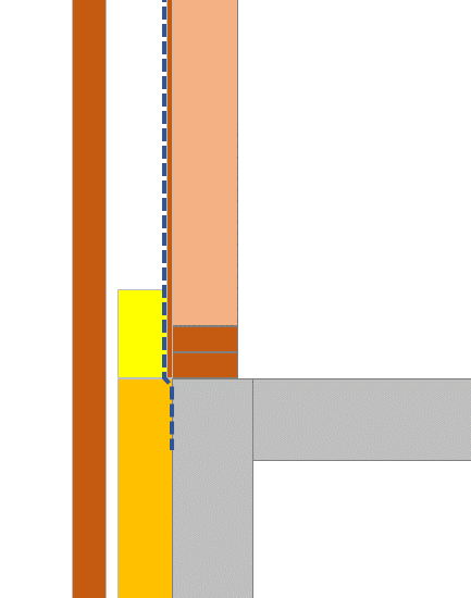 이 경우 목구조는.. 2x6 + 2x2 + 2x2 이므로, OSB 외측으로 76mm 가 돌출되고, 그 위에 2인치 세로 각목 + 6mm CRC 보드 + 벽돌타일 이므로,