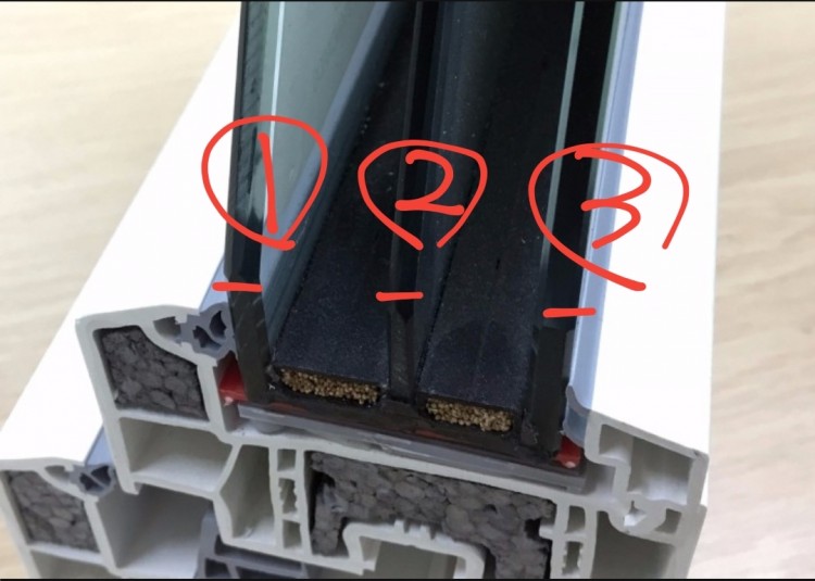 원래 로이 3중유리는 위 사진 상 외측3) 실내측1) 유리 안쪽 부분이 공통적으로