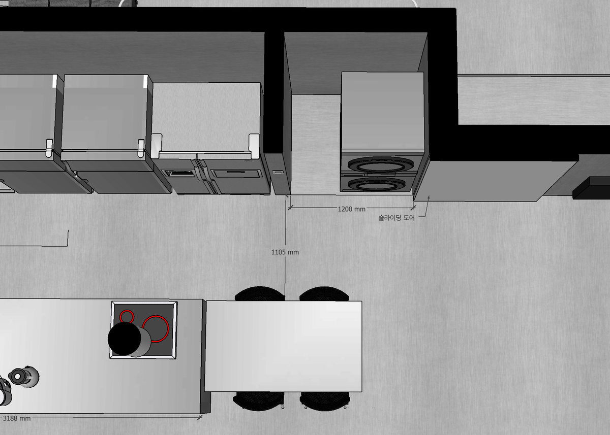 세탁실의 문을 일반적인 여닫이를 쓰려고 했습니다만 가구배치를 생각해보니 바로 앞에 식탁과 의자가 위치해 문이 상당히 방해가 될것같습니다. 그래서 행거도어를 쓰기로 방향을 바꾸었으나, 이번에는 문이 열려야할곳에 도어폰이 위치하기에 사실상 그것도 어려운 상황입니다. 왼쪽으로는 스위치와 냉장고가 있어서 왼쪽으로 열지도 못하구요. 그냥 열어놓고 노출해서 쓰거나 커튼만 써야할 상황인데 세탁기의 소음문제도 있고 외관상 깔끔하지 못할것같아 고민입니다. 이런곳에서 쓸수있는 옵션이 혹시 없을까요?