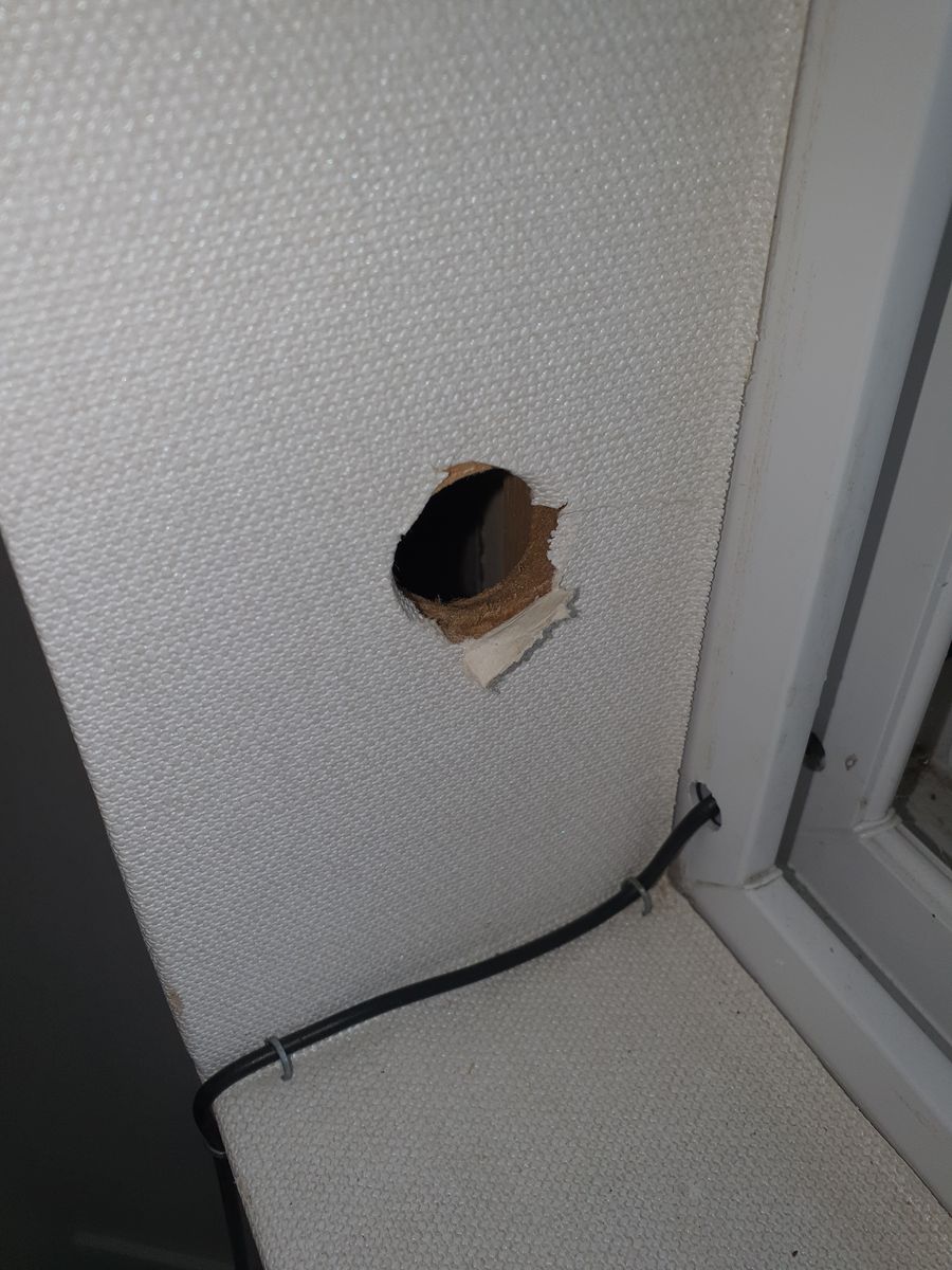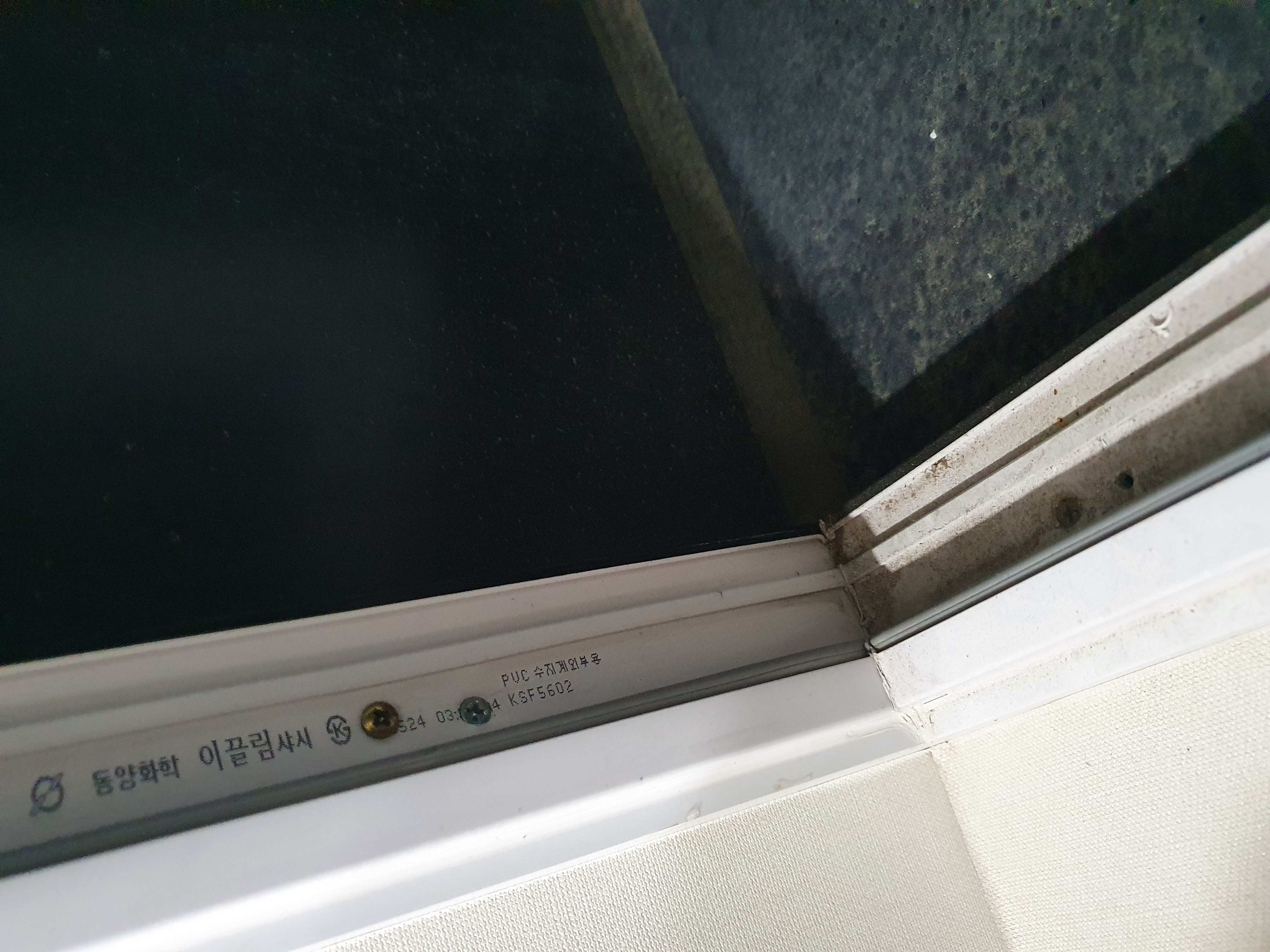 그런데 거실창 모서리 전기선 나오는 구멍에는 합판?으로 보입니다.