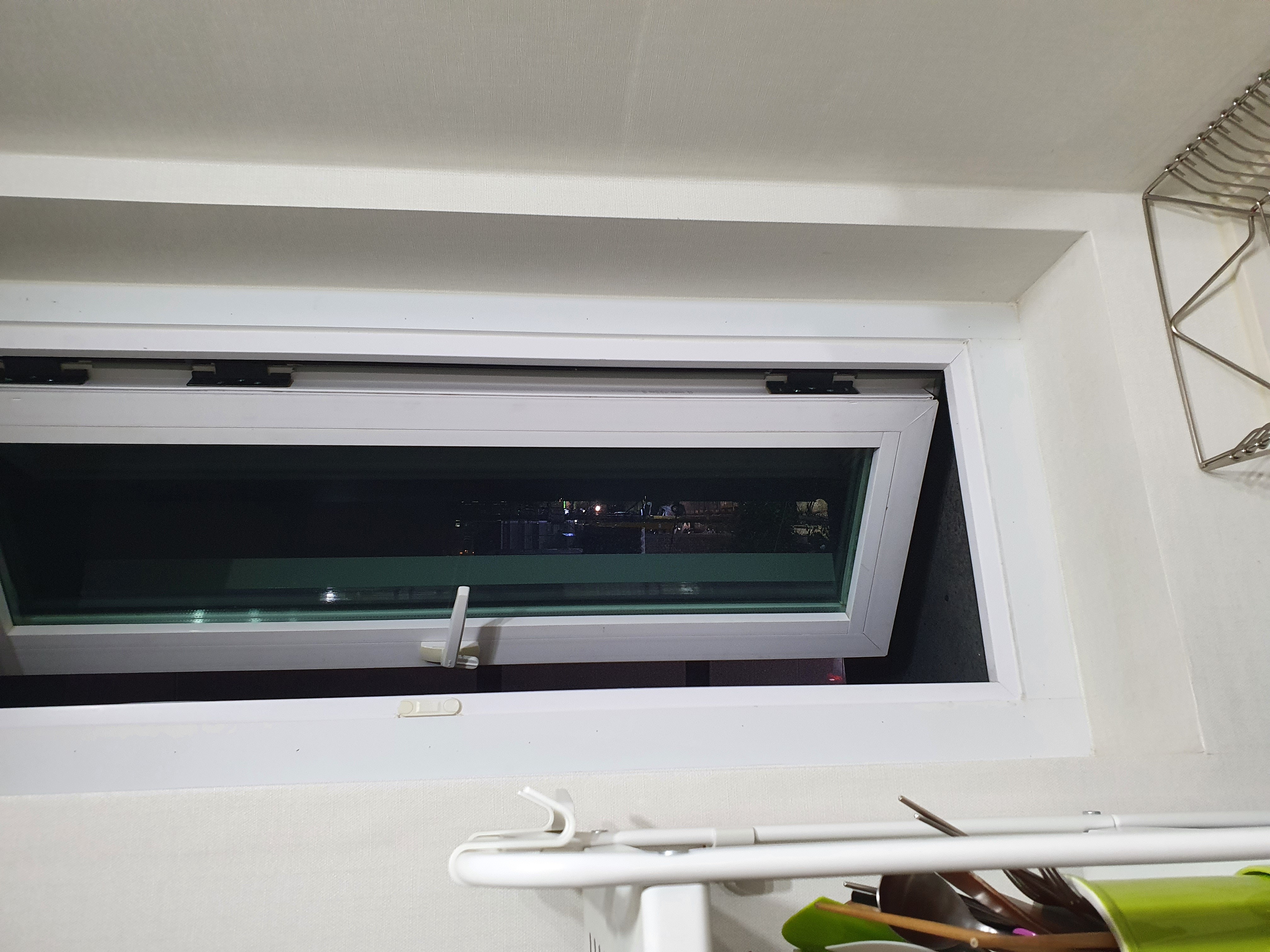주방후드가 밖으로 연결이 안 되어 있고 천장에서 끊겨서 주방창문 활용