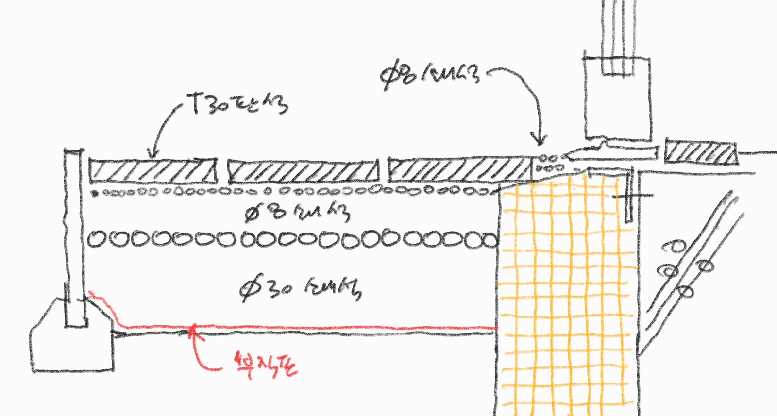 저희가 지금 골조에 창호가 앵글로 고정되는 방식입니다. 그렇게 남 북 15미터길이로 길게 설치가 되는데.. 그 하부는 xps200가 있고 그 두께만큼을 스텐 빗물받이로 덮는 계획입니다. 구배도 살짝 생기고..