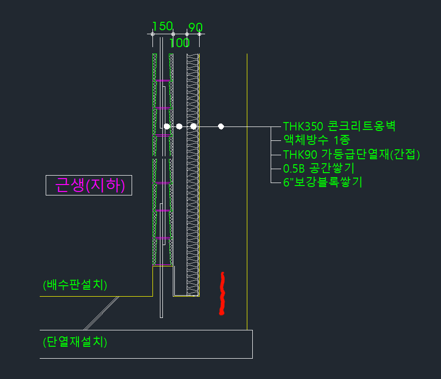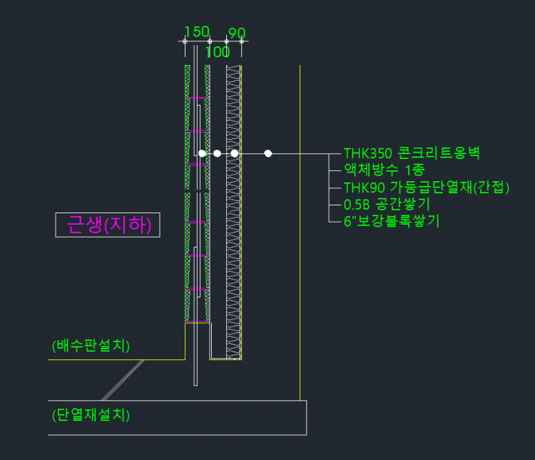 지하층 외벽 구성을 위의 그림과 같이 하면 어떨까요?