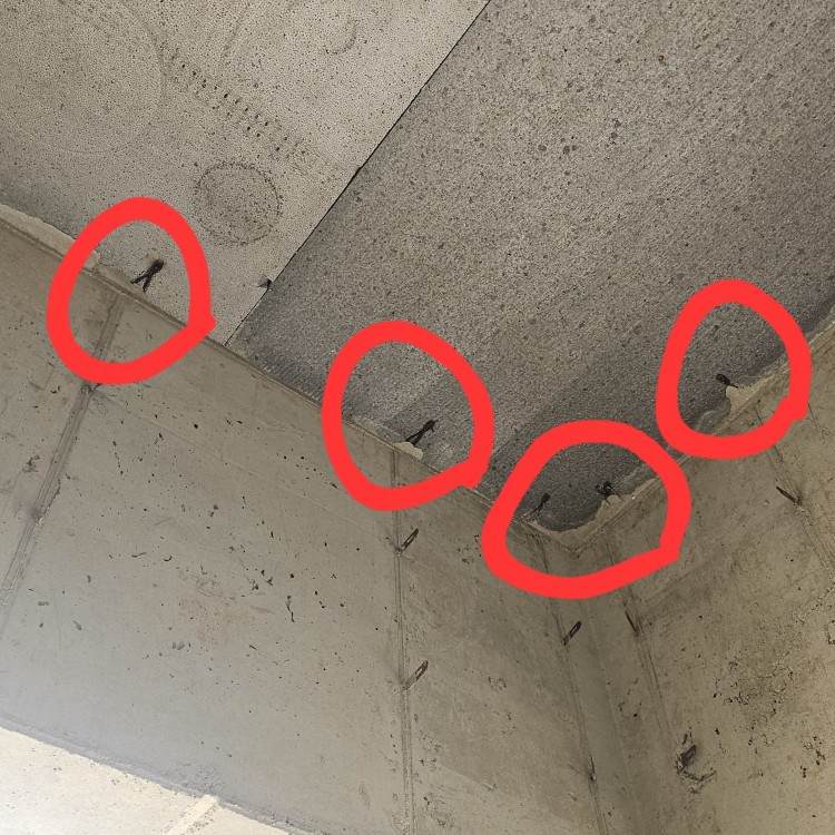 외벽과 접하는 부분에 사진과 같이 단열재에 와이어와 못으로 고정한 부분이 있습니다.