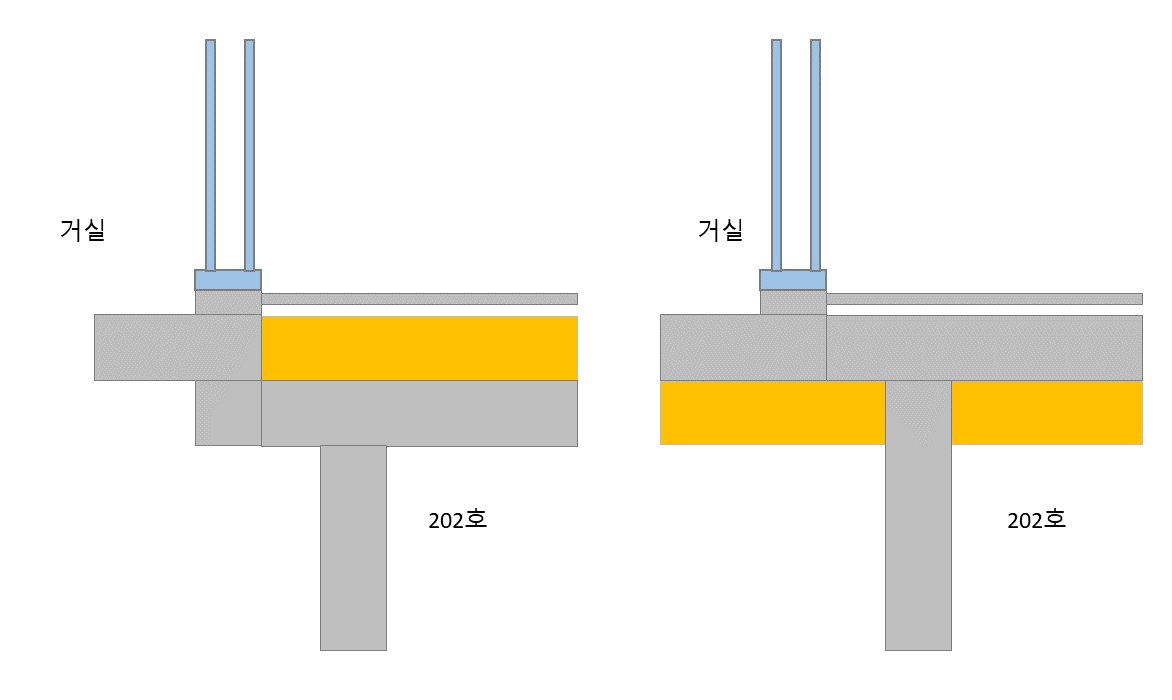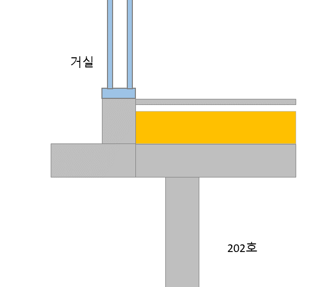 여기에서 2층 부분 202호 방을 보시면 슬라브 다운을 했는데