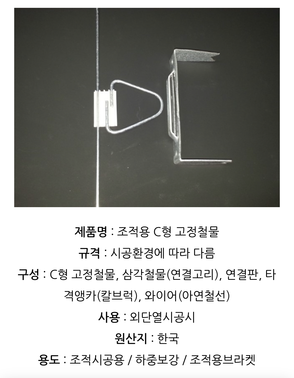문제는 이 철물의 위치를 미리 예측할 수는 없기에, 결국 단열재는 별도로 고정이 되어야 한다는 결론을 얻을 수 있습니다.